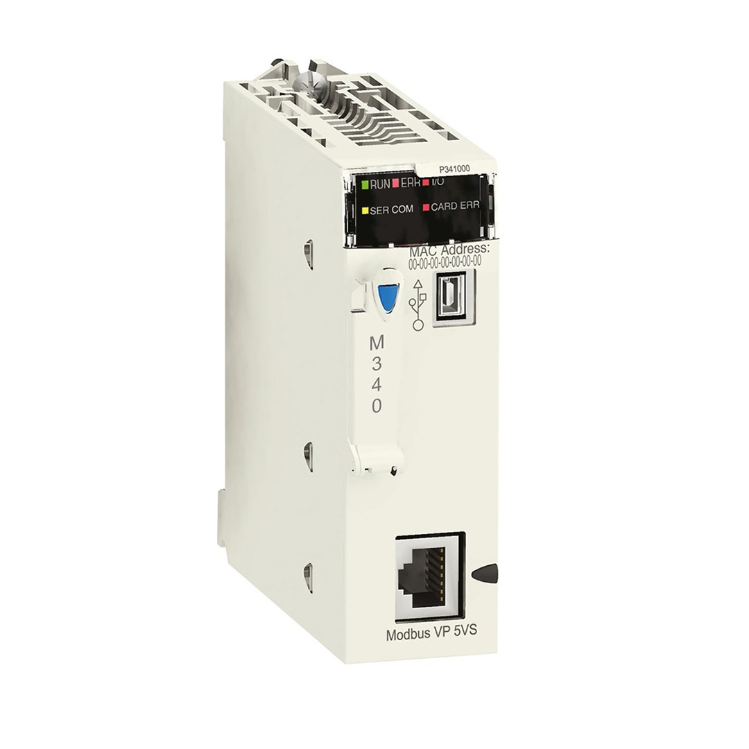 Ürün serisi:Modicon M340 otomasyon platformuÜrün ya da bileşen tipi:Işlemci modülüRafların sayısı:2Slotların sayısı:11Dijital G/Ç işlemci kapasitesi:512 G/Ç tekli raf yapılandırmaAnalog G/Ç işlemci kapasitesi:66 G/Ç tekli raf yapılandırma128 G/Ç çoklu raf yapılandırmasıUygulamaya özel kanal sayısı:20İzle:Tanı sayaçları ModbusOlay sayaçları ModbusTamamlayıcı ÖzelliklerKontrol kanalları:Programlanabilir döngülerEntegre bağlantı tipi:Yalıtımsız seri bağlantı RJ45 karakter modu, aktarim modu: taban bandında asenkron, RS232C, aktarim modu: 2 bükülmüş ekranlı çift -de 0,3…19,2 kbit/sn tam duplexYalıtımsız seri bağlantı RJ45 karakter modu, aktarim modu: taban bandında asenkron, RS485, aktarim modu: 1 bükülmüş ekranlı çift -de 0,3…19,2 kbit/sn yarım duplexYalıtımsız seri bağlantı RJ45, master/slave Modbus, RTU/ASCII, aktarim modu: taban bandında asenkron, RS232C, aktarim modu: 1 bükülmüş ekranlı çift -de 0,3…19,2 kbit/sn yarım duplexYalıtımsız seri bağlantı RJ45, master/slave Modbus, RTU/ASCII, aktarim modu: taban bandında asenkron, RS485, aktarim modu: 1 bükülmüş ekranlı çift -de 0,3…19,2 kbit/sn yarım duplexUSB portu -de 12 Mbit/sHaberleşme modülü işlemcisi:2 Ethernet haberleşme modülü2 AS Arayüz modülüSegment başına cihaz sayısı:0…32 (karakter modu)0…32 (Modbus)Cihazların sayısı:2 noktadan noktaya karakter modu2 noktadan noktaya ModbusVeriyolu uzunluğu:0…10 m seri bağlantı yalıtımsız karakter modu segment0…10 m seri bağlantı yalıtımsız Modbus segment0…1000 m seri bağlantı yalıtımlı karakter modu segment0…1000 m seri bağlantı yalıtımlı Modbus segment0…15 m karakter modu noktadan noktaya0…15 m Modbus noktadan noktayaMaksimum musluk bağlantıları uzunluğu: