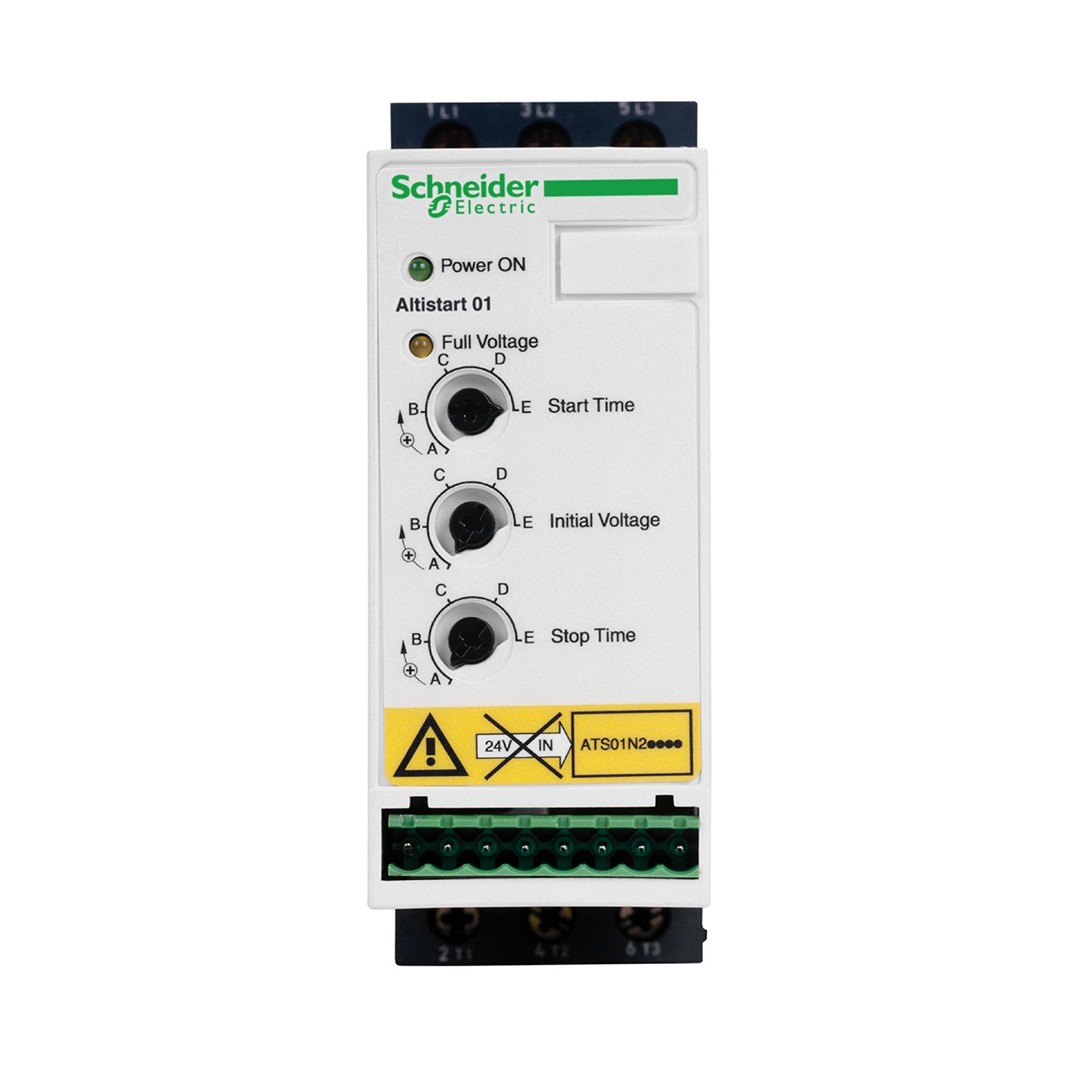 range of productAltistart 01product or component typeSoft starterproduct destinationAsynchronous motorsproduct specific applicationSimple machinedevice short nameATS01network number of phases3 phases[Us] rated supply voltage380…415 V – 10…10 %motor power kW3 kW, 3 phases at 380…415 V1.5 kW, 3 phases at 380…415 V2.2 kW, 3 phases at 380…415 VIcL starter rating6 Autilisation categoryAC-53B conforming to EN/IEC 60947-4-2current consumption30 A at nominal loadtype of startStart with voltage ramppower dissipation in W4 W at full load and at end of starting64 W in transient state
