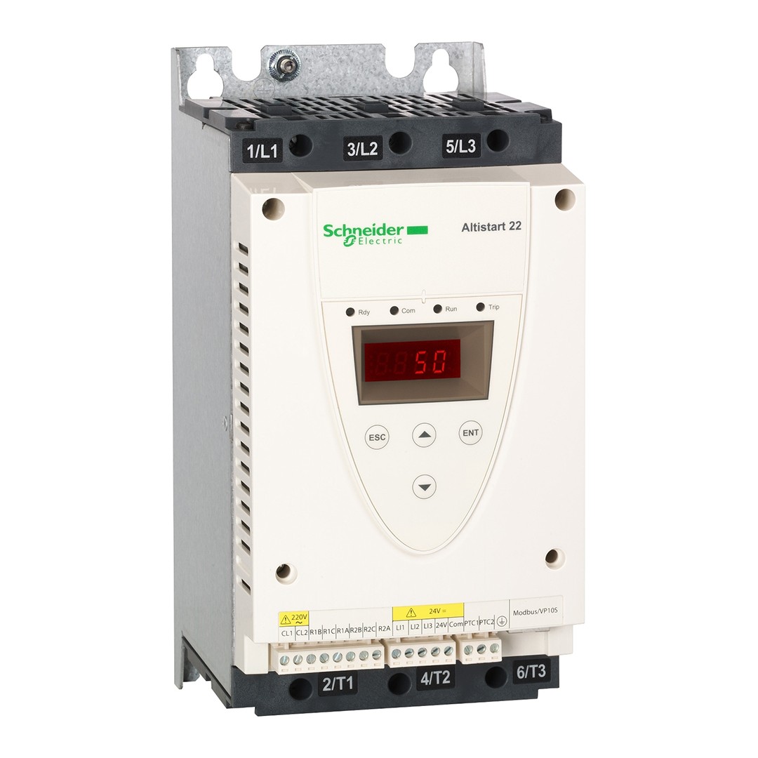 Ürün Bilgileri – ATS22D32Q (Altistart 22 Soft Starter)Ürün Adı: Schneider Electric Altistart 22 Soft Starter – Model: ATS22D32Q Motor Gücü:7.5 kW @ 230 V15 kW @ 400–440 V Akım Değeri: 32 A nominal (ICL), standart kullanım Besleme Gerilimi: 195…484 V (230–440 V nominal çalışma aralığı) Montaj & Boyutlar:Boyut: ~130 × 265 × 169 mmAğırlık: ~7 kg Koruma Sınıfı: IP20 – toza ve küçük yabancı cisimlere karşı korumalı Entegre Bypass: Dahili bypass rölesine sahip, böylece sürücü ısınmasını ve gürültüyü azaltır Aşırı Isınma Koruması: IEC 60947-4-2 (AC-53A) sınıfına uygun; entegre termal koruma var Çevresel Dayanıklılık:Çalışma sıcaklığı: –10 °C … +40 °C (40–60 °C arası derating uygulanmalı)Montajda dikey konum (±10°) önerilir; ısı dağılımı için yeterli hava akışı gereklidirUygulama Alanları ve Avantajları:Konveyörler, pompalar, fanlar, kompresörler, endüstriyel makineler için ideal.Darbe ve aşınmayı azaltarak sistem ömrünü uzatır, yapılandırma kolaylığı sunar.